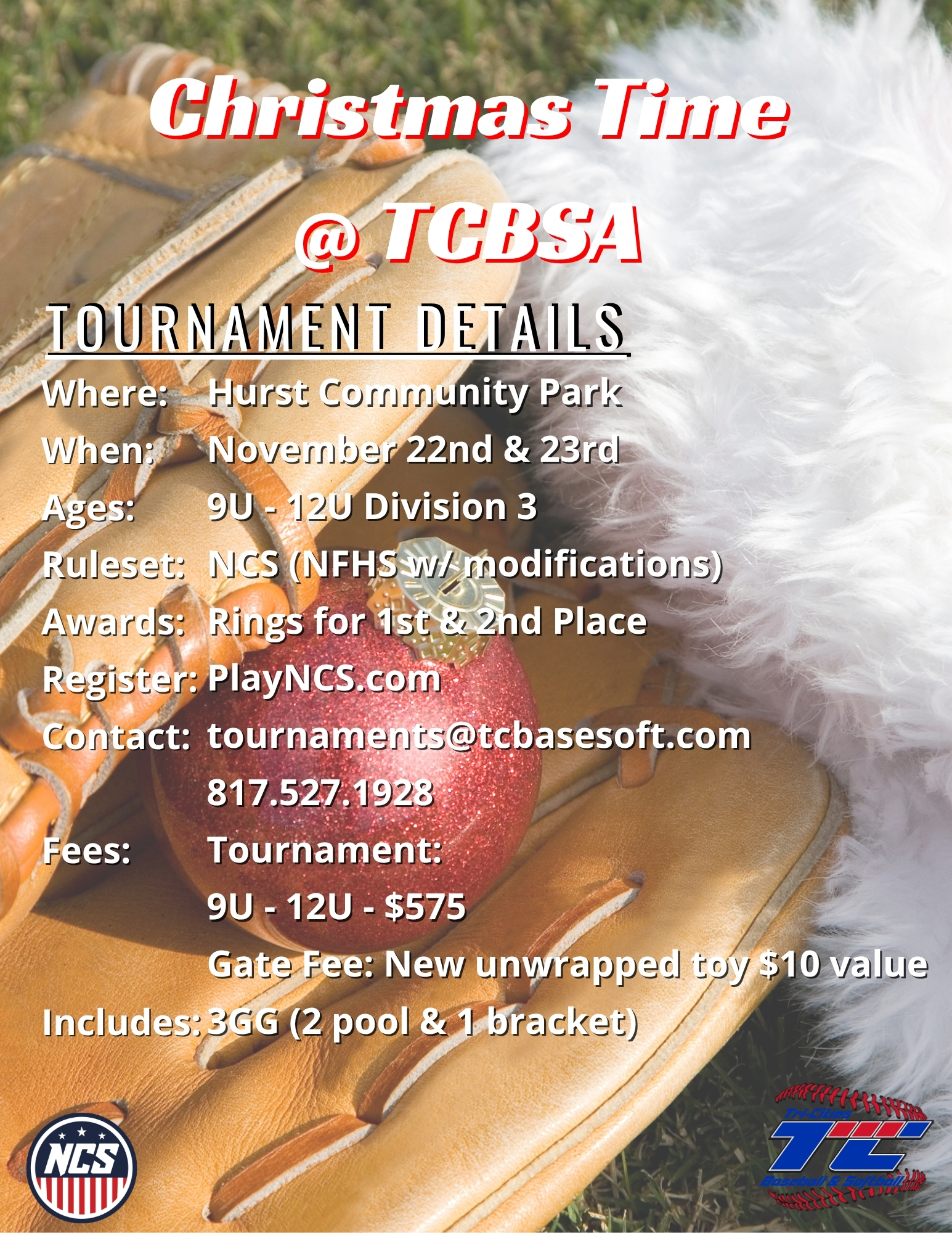 Team gate fee: No team gate fees for TCBSA hosted events in Fall 2025