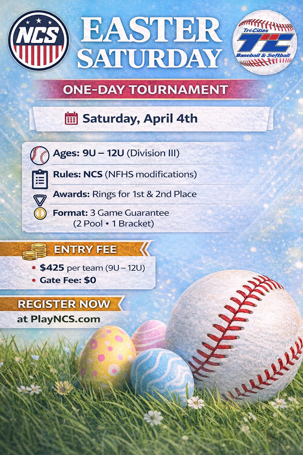 Team gate fee: No team gate fees for TCBSA hosted events in Spring 2026